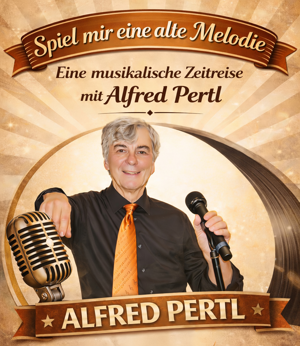 Tauchen Sie ein in eine Welt voller unvergesslicher Melodien und schöner Erinnerungen. Mit den beliebtesten Schlagern und Evergreens entführt Sie Alfred Pertl auf eine musikalische Zeitreise zurück in jene Tage, in denen Musik noch mitten ins Herz ging. Freuen Sie sich auf bekannte Lieder zum Mitsingen, Tanzen und Genießen – Musik, die verbindet und Erinnerungen wieder lebendig werden lässt. Erleben Sie stimmungsvolle Momente voller Gefühl, Nostalgie und guter Laune.