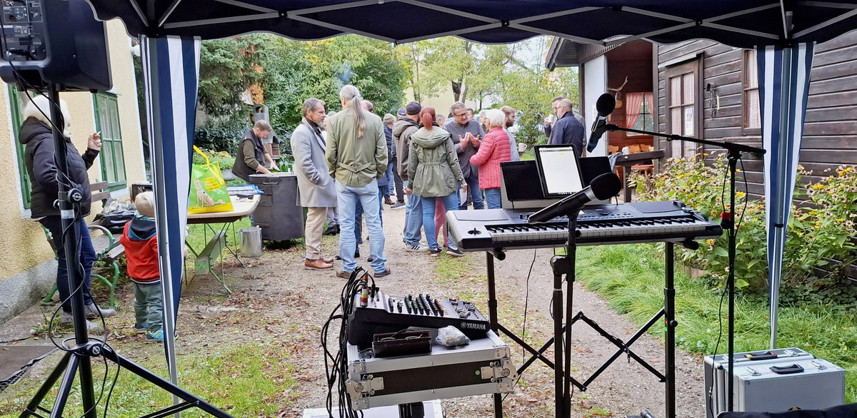 Der Maronibrater war – so wie ich – schon einige Zeit vor der Veranstaltung mit den Vorbereitungen beschäftigt. So richtig stimmungsvoll wurde es dann, als die Dämmerung einsetzte und die Gäste eintrafen. Der Duft der frisch gebratenen Maroni lag in der Luft, und das Fest konnte beginnen.