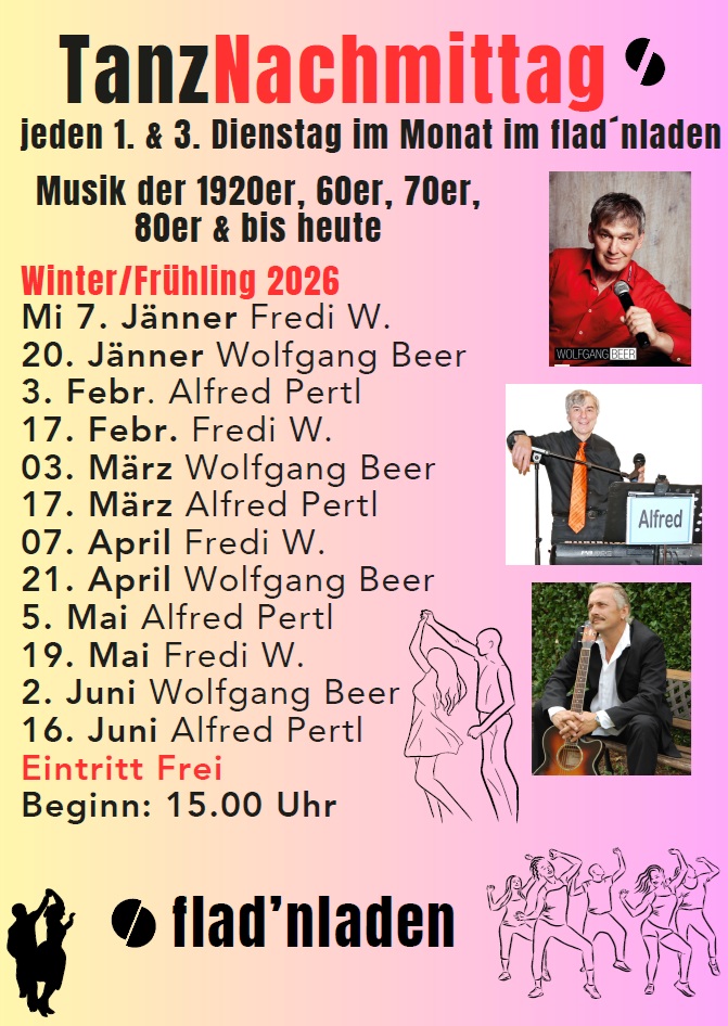 Ankündigung Tanznachmittag im flad’nladen am 3. Februar 2026