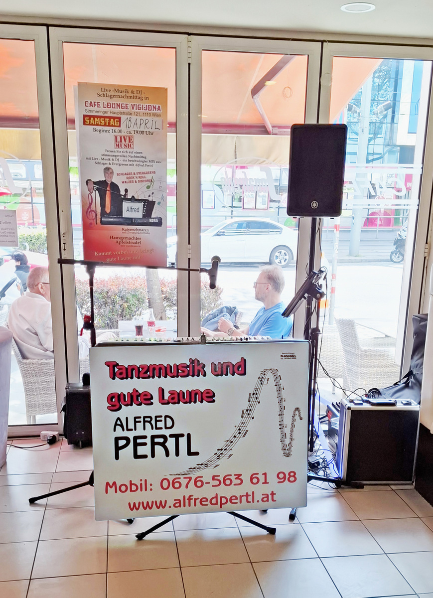 Heute fand bereits der vierte Schlagernachmittag in diesem Jahr in der Café Lounge Vigijona – Eissalon auf der Wiener Simmeringer Hauptstraße statt. Ich durfte auch diesmal wieder für die musikalische Umrahmung sorgen und freue mich jedes Mal aufs Neue auf meine Auftritte in diesem schönen Lokal.
